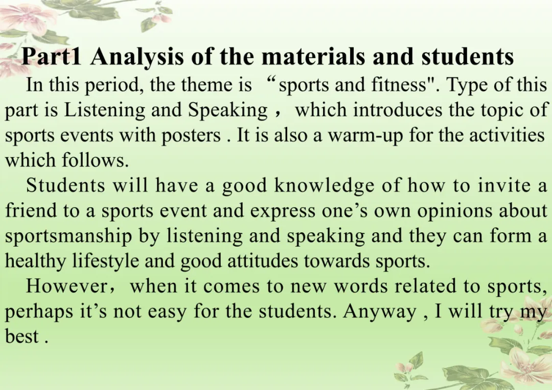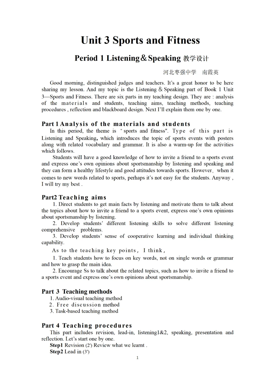>说课课件:人教版必修第一册 Unit 3 Listening and speaking 说课 (河北 南霞英)