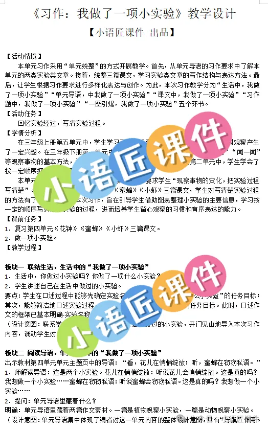 大家好,我是小语匠课件!今天给大家分享三年级册《习作:我做了一项小实验》的独家课件。