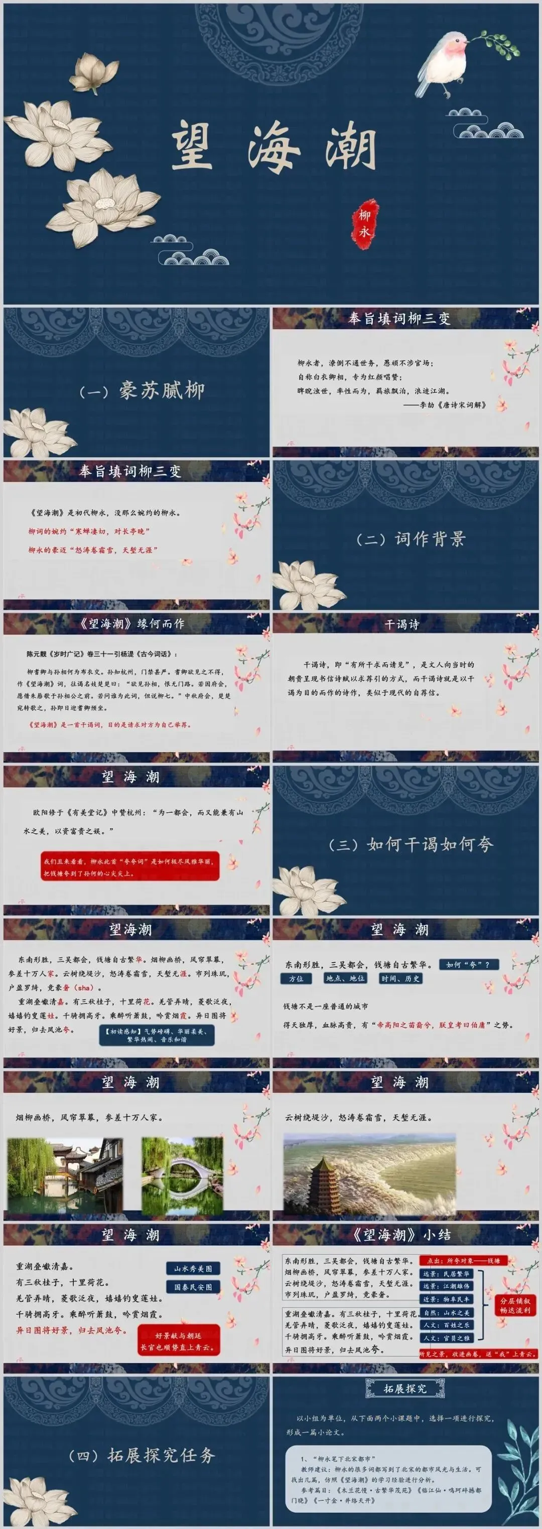《望海潮》课件文本分析非常深刻,课件设置了小组拓展探究任务,更好的帮助学生进行思维拓展。