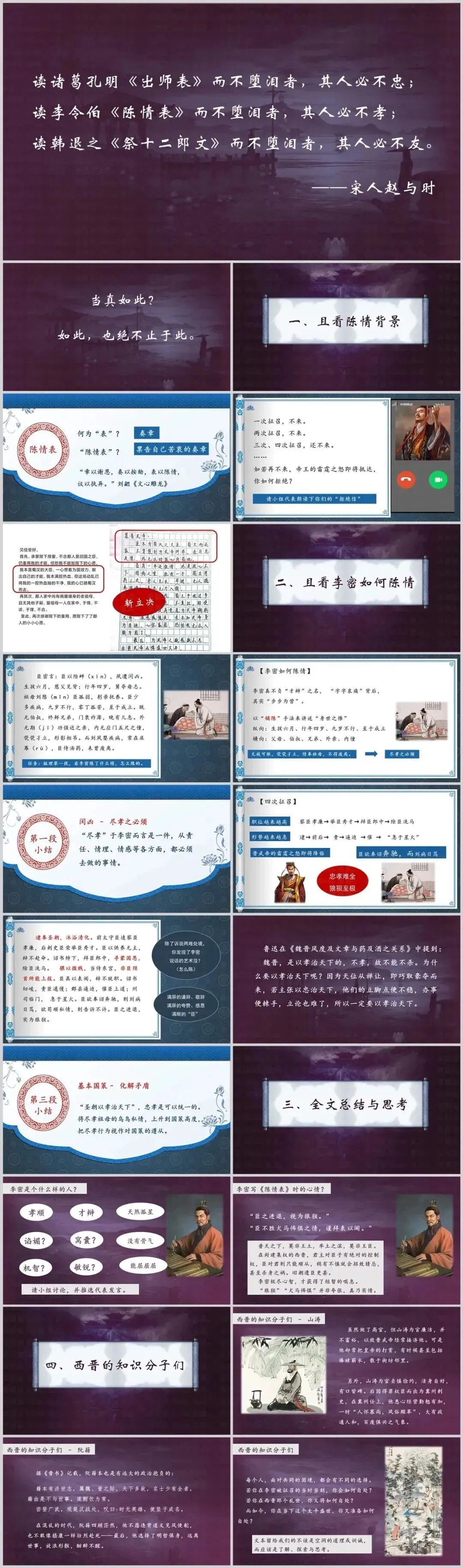 《陈情表》课件延续了老师文本解读的风格,层层递进,引导学生思考文字背后暗藏的问题。