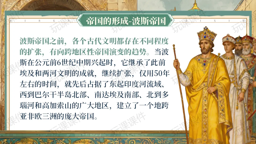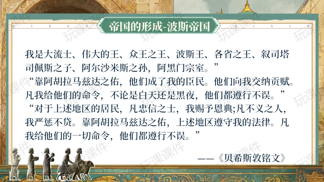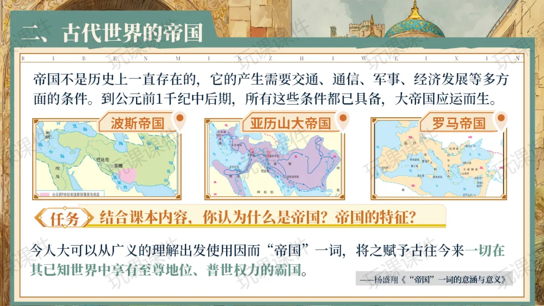 《古代世界的帝国与文明的交流》课件融合丰富的文献史料,将抽象知识具象化,美化也很用心!| 玩课