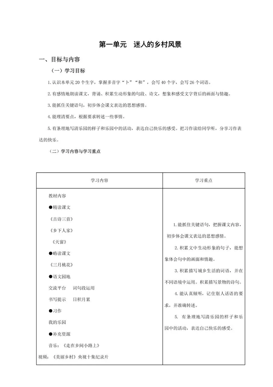 四年级下册语文第一单元大单元教学设计、课件ppt