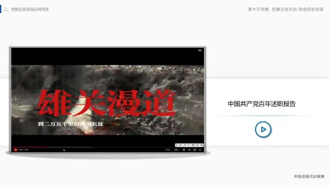 【P35】播放原PPT视频:道路自信:实现中国梦的必由之路