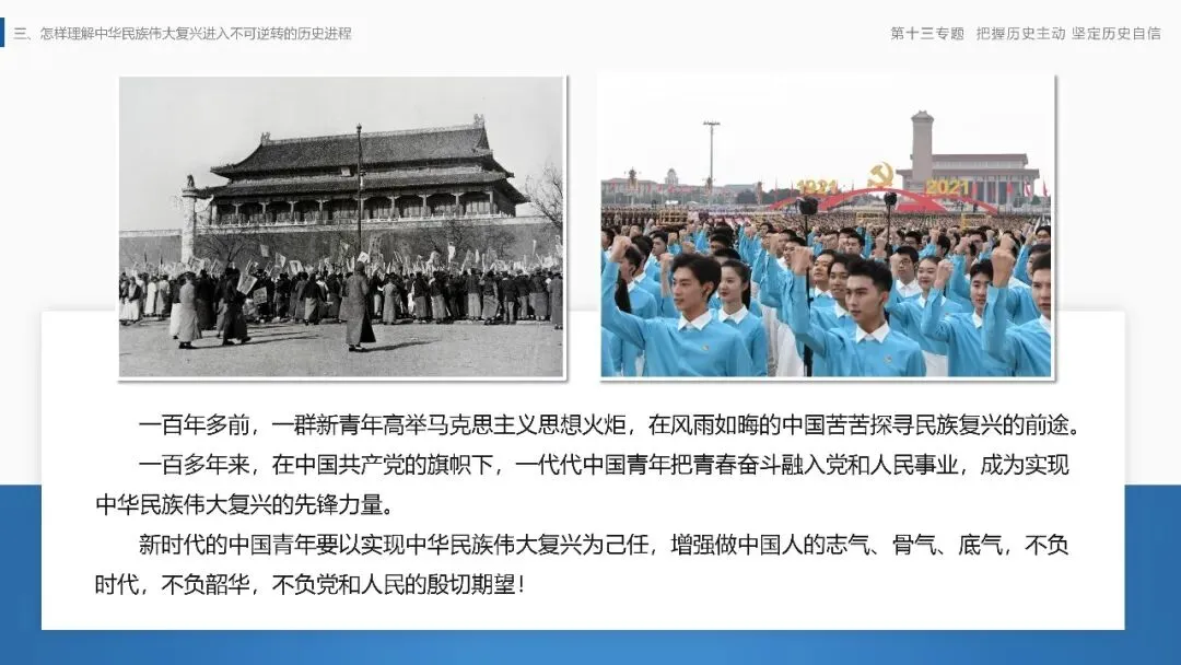 史纲专题十三把握历史主动坚定历史自信(案例持续更新中,课件+稿子+视频),共1.9万字,88页PPt。工作室有新思想、共同体概论、国家安全教育、毛中特、马原、史纲、德法等逐字稿和说课稿,可定制比赛课件PPt,论文、课题、微课等内容。需要完整版,可以添加微信qingjiaosizheng999部分案例展示: