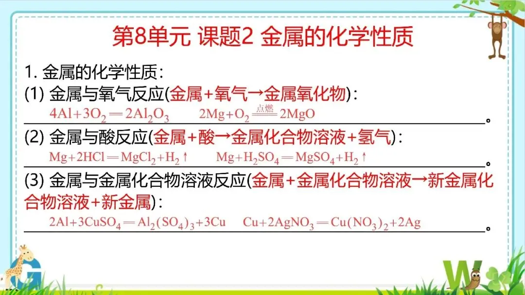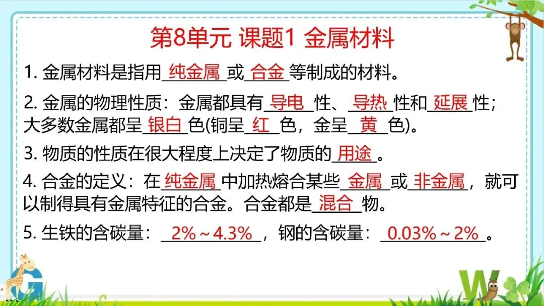 【希沃课件】人教版九年级化学第8单元单元复习与知识梳理教学课件欣赏!
