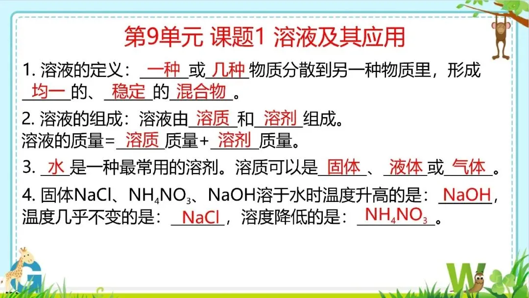 【希沃课件】人教版九年级化学第9单元单元复习与知识梳理教学欣赏!