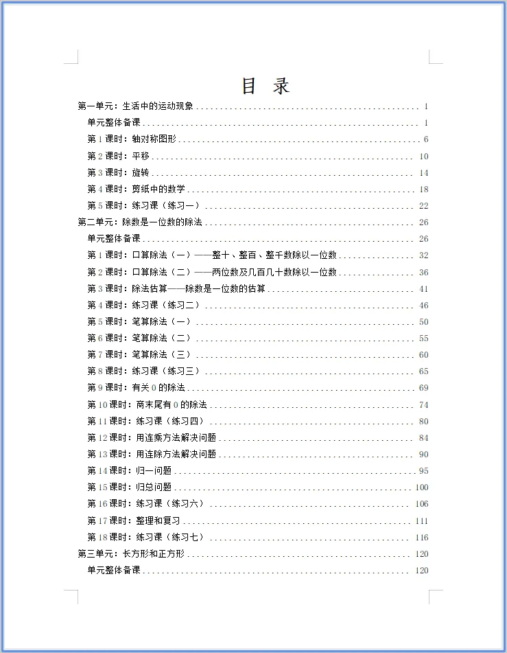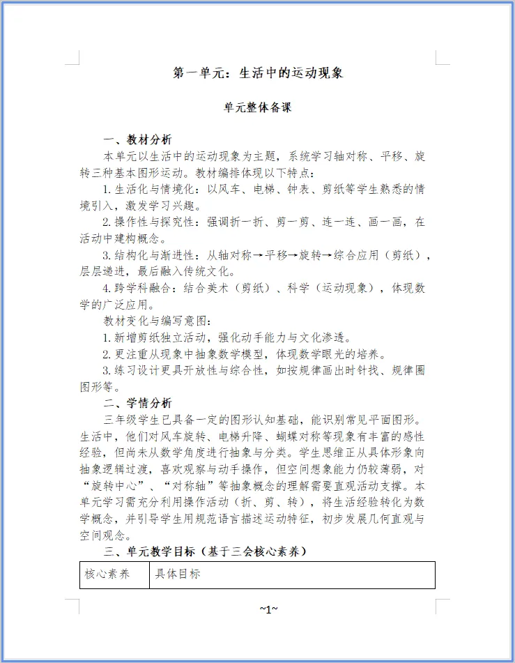 三年级下册数学(人教版)全册核心素养教案,含单元整体备课,每课时课后反思,WORD版文末可下载。