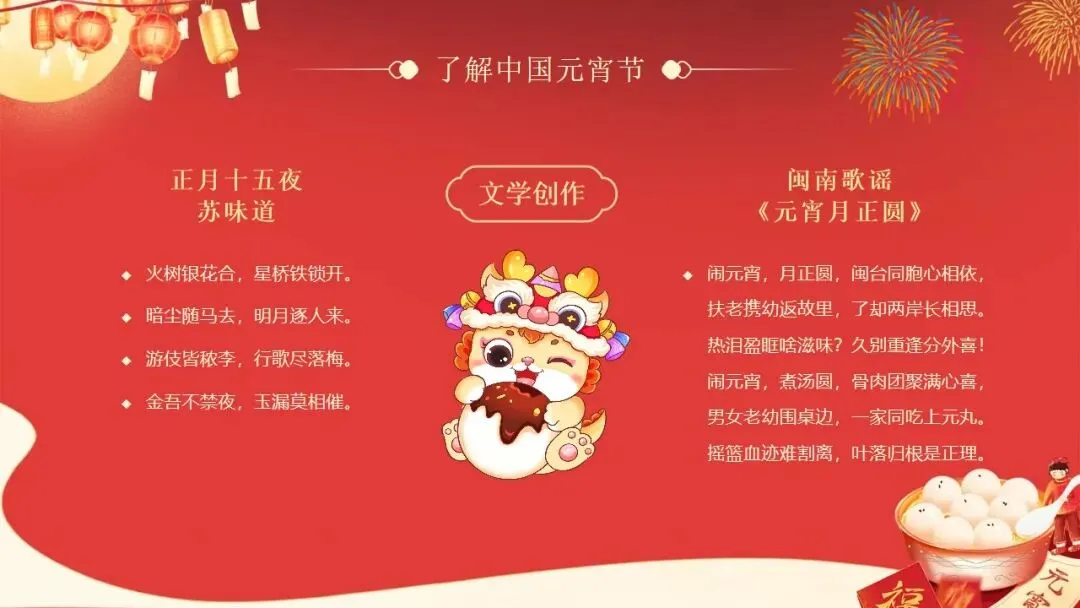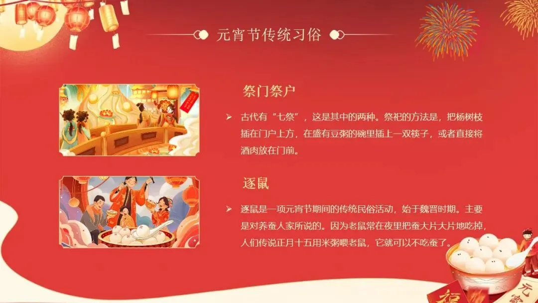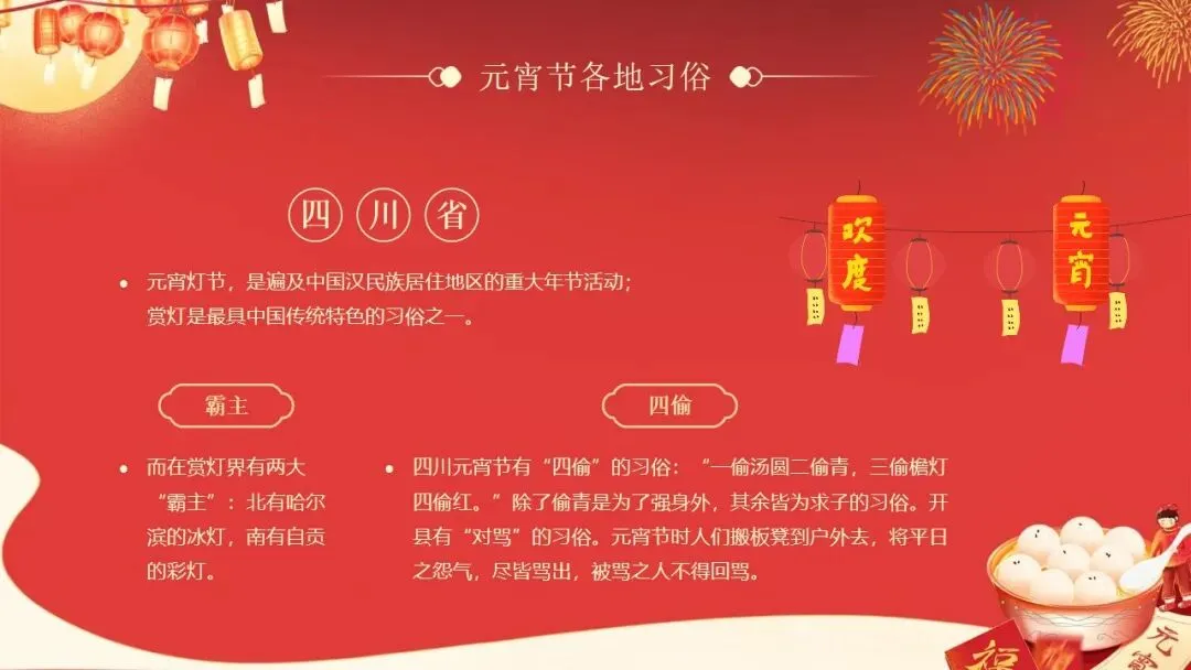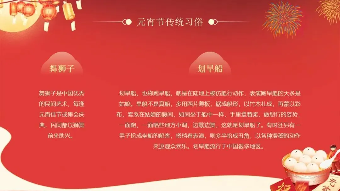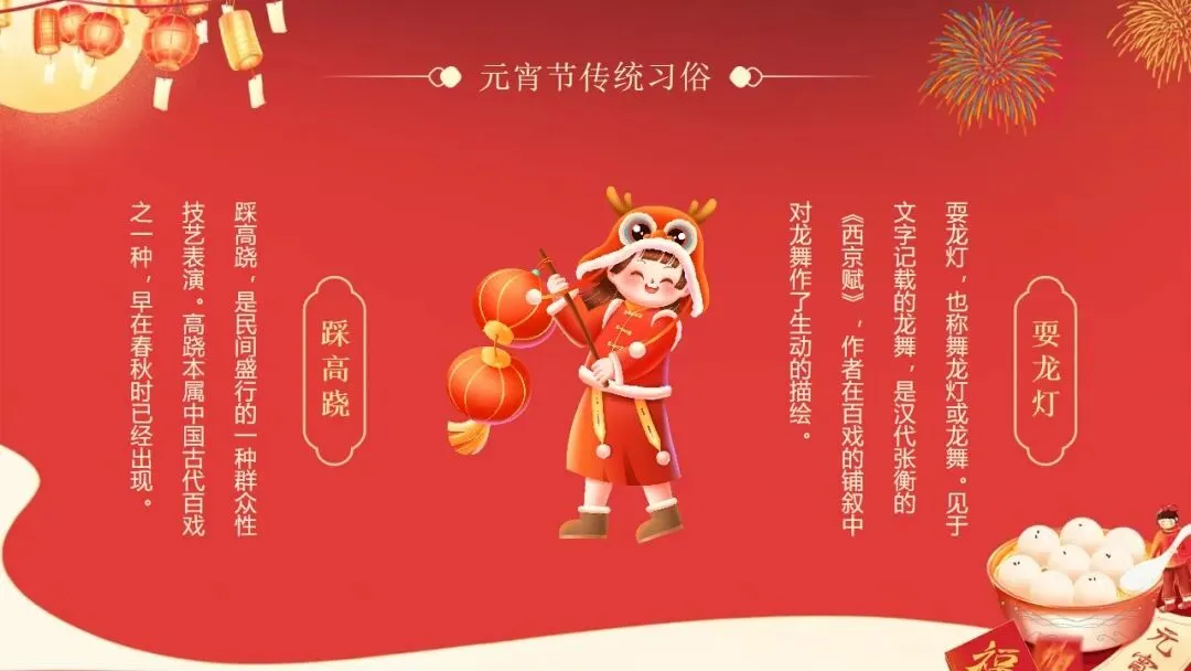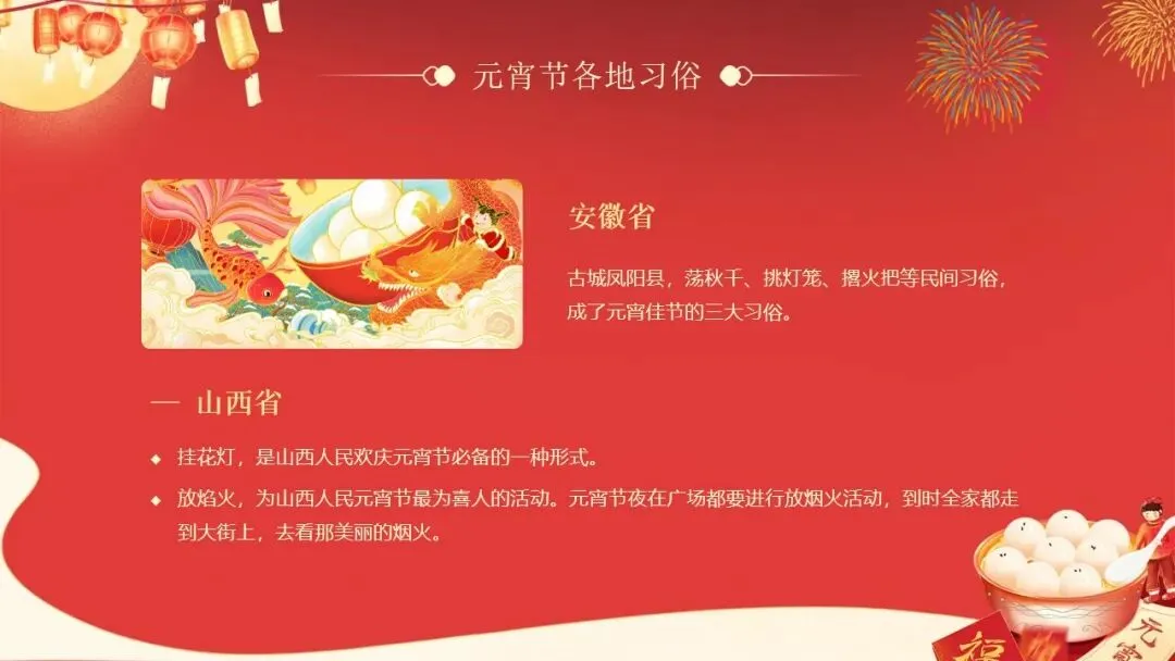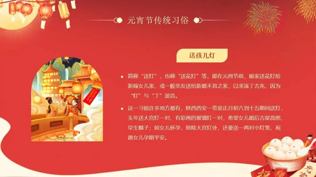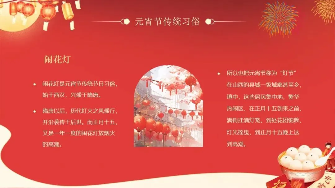 元宵节,又称上元节、小正月、元夕或灯节,时间为每年农历正月十五。古人称“夜”为“宵”,正月十五是一年中第一个月圆之夜,所以称正月十五为“元宵节”。元宵节主要有赏花灯、吃汤圆、猜灯谜、放烟花等一系列传统民俗活动。