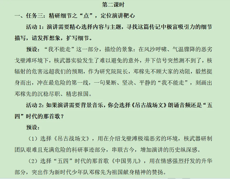 活动2:小试牛刀,为邓稼先写颁奖词,用于演讲稿的结尾部分。