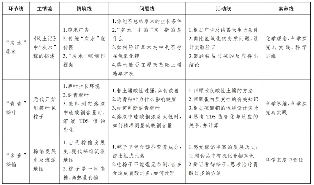 以"物质的变化与转化""物质的多样性"学科大概念为统领,通过对教材内容的分析,构建"应用广泛的酸、碱、盐"概念层级,制订单元复习教学目标,以"粽"为主线设计教学流程并进行教学实践,结合学情在真实情境下引导学生运用酸、碱、盐相关知识解决问题,帮助学生形成认识物质的一般思路,引领学生挖掘化学学科的本质,实现核心素养的发展。
