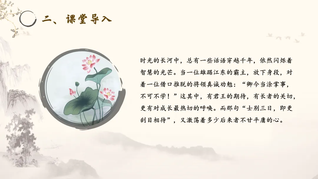 时光的长河中,总有一些话语穿越千年,依然闪烁着智慧的光芒。当一位雄踞江东的霸主,放下身段,对着一位借口推脱的将领真诚劝勉:“卿今当涂掌事,不可不学!”这其中,有君王的期待,有长者的关切,更有对成长最热切的呼唤。而那句“士别三日,即更刮目相待”,又激荡着多少后来者不甘平庸的心。今天,就让我们走进这则短小精悍的故事,聆听这场改变命运的对话,感受那份催人奋进的力量。
