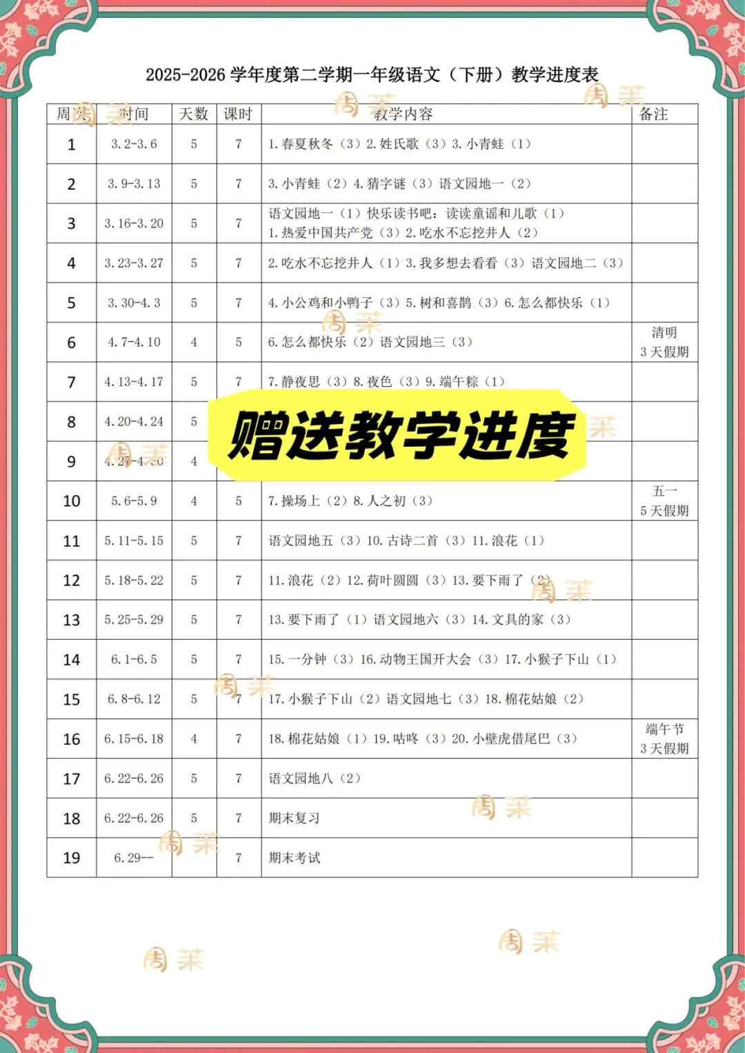 当前位置:首页>教案>26春新版一年级下册语文核心素养教案带二次备课