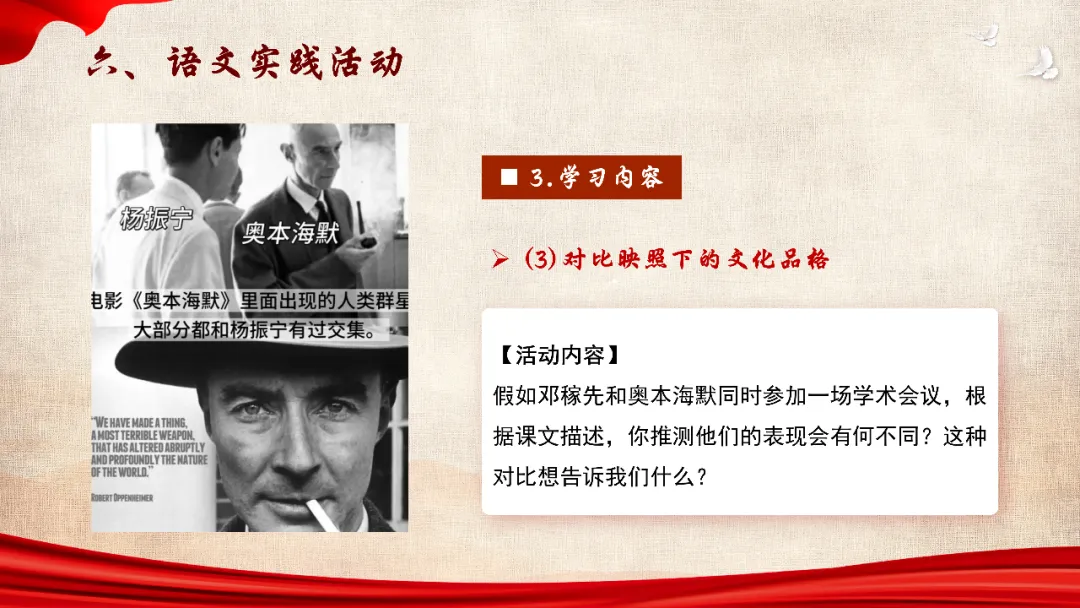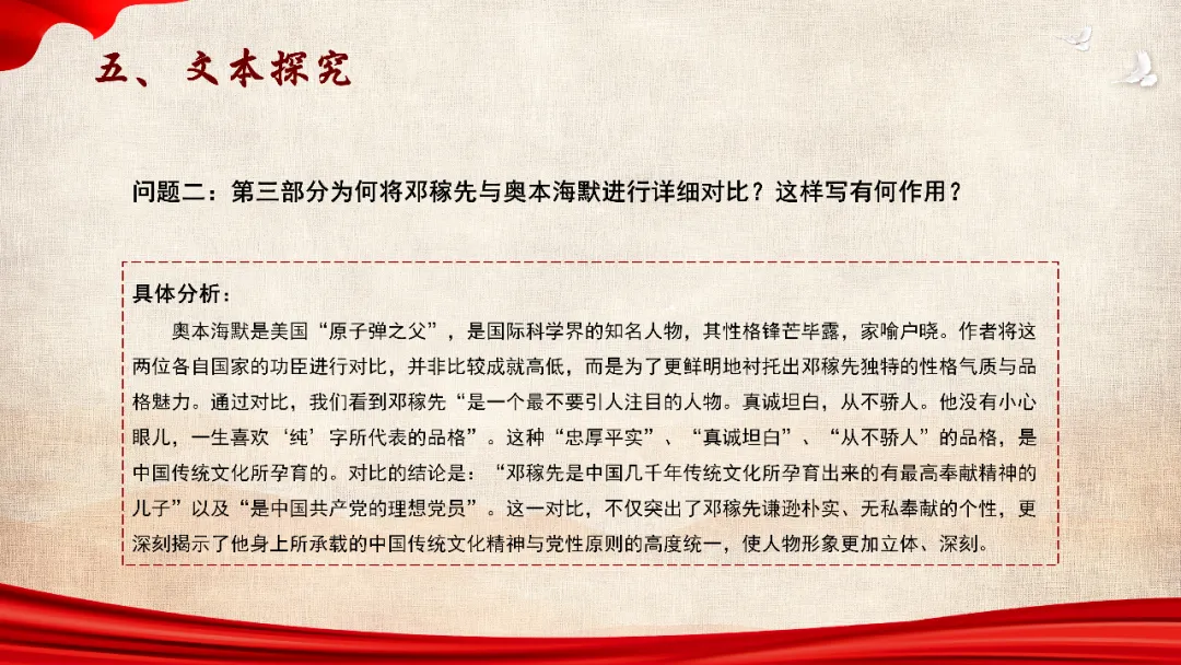 第三部分:将邓稼先与奥本海默进行对比——凸显人物品格的对比。
