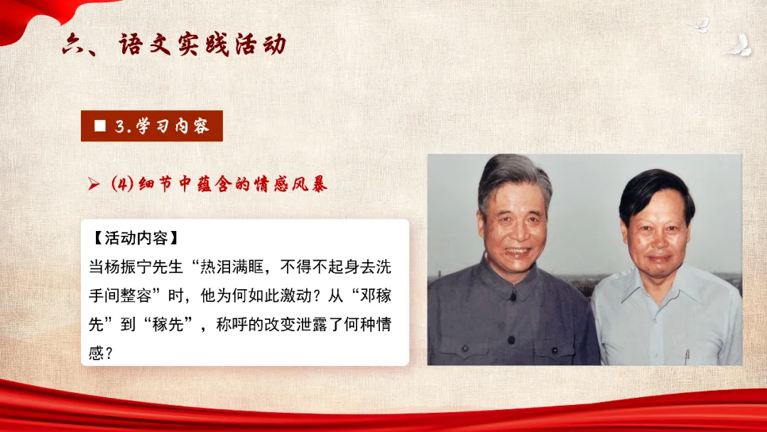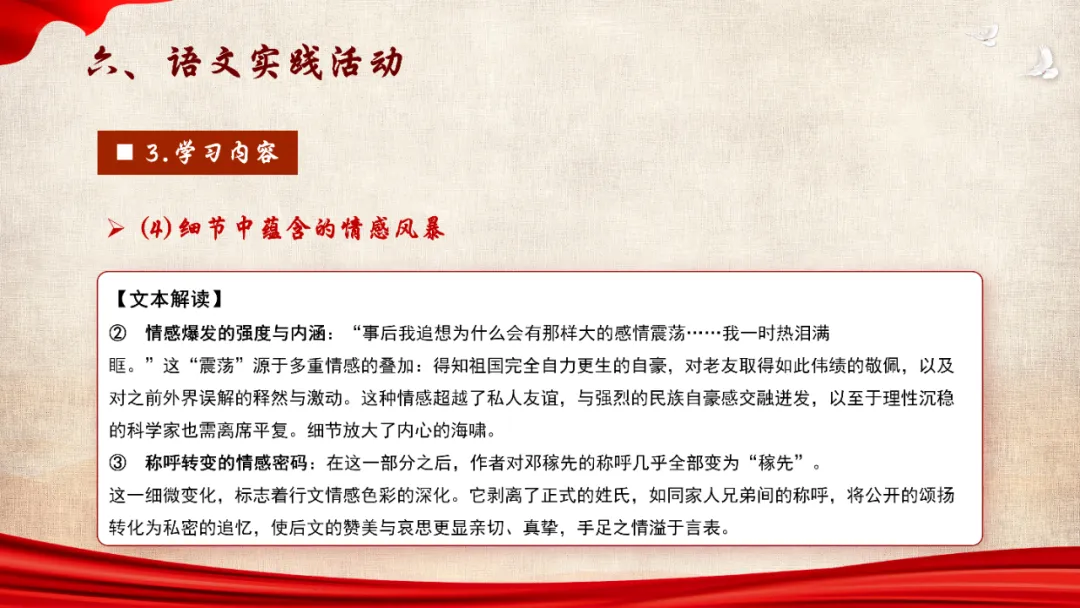 ③ 称呼转变的情感密码:在这一部分之后,作者对邓稼先的称呼几乎全部变为“稼先”。