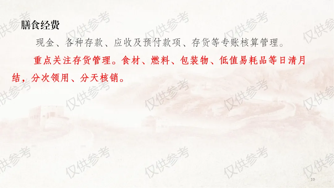3.膳食经费管理中,重点关注食堂承包经营0租金风险问题。