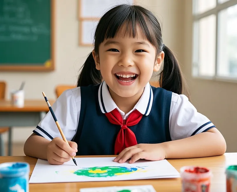 由于没有美术基础和工具,孩子虽然非常努力和用心,却只能进行简单的绘画。