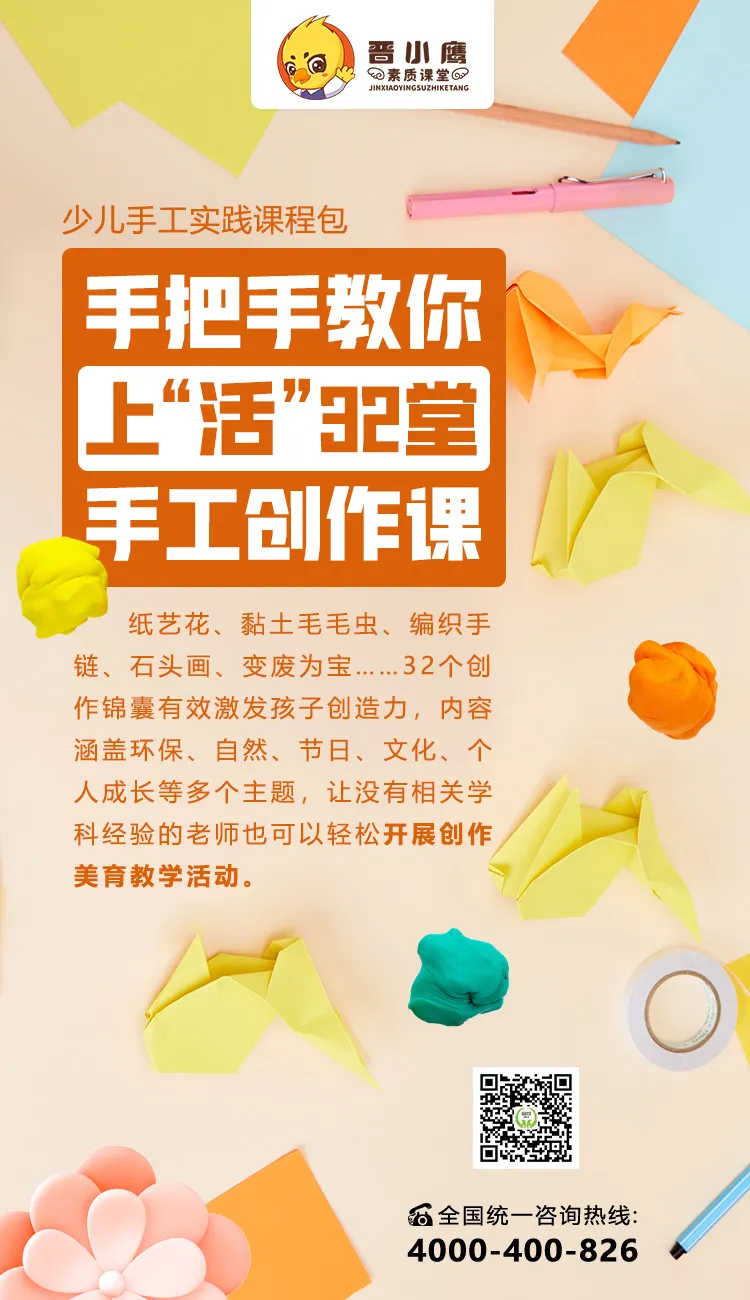 所以,我们设计了这套少儿手工实践美育课程包,希望让没有相关学科经验的老师和家长都能够开展手工创作美育课。