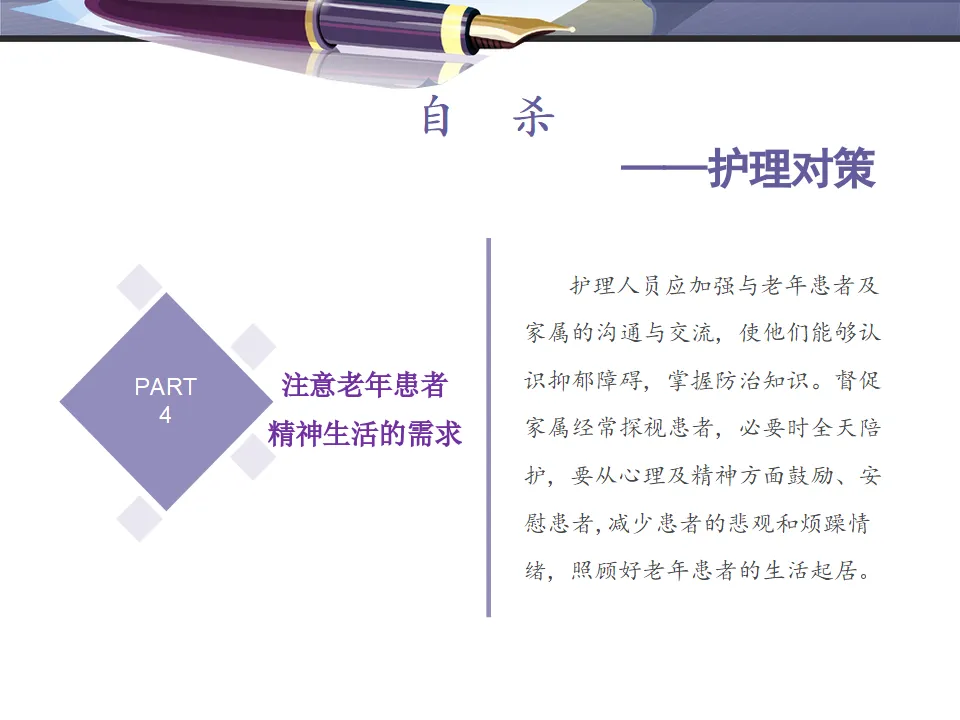 随着国民经济的发展,人均寿命在逐渐提高,但老年人由于各种生理机能减退,器官结构发生老化,五官、躯干以及四肢的功能也逐渐下降,平衡功能出现失衡,视觉、听觉、嗅觉等功能减退,精神状况缺失、心脑血管疾病、骨关节疾病等,常出现晕厥、低血糖反应、头晕目眩、低血压症状,易导致跌倒、坠床、烫伤、压疮、多服药、漏服药、服错药、药物反应、交叉感染等安全问题。老年人还因社会、心理,躯体疾病,易出现抑郁症,产生悲观,绝望,急躁,易怒等情绪。个别患者对治疗失去信心,出现自杀等过激行为,引起医疗护理纠纷。当老年患者对医疗护理的需求不断增加,由于其心理,生理特征变化。老年患者的安全问题越来越受到重视。安全护理是指在实施护理的全程中,不发生法律和法定的规章制度允许范围以外的心理、机体结构或功能上的损害、障碍、缺陷或死亡,也是保证患者的身心健康,对不安全因素进行有效控制。来源:作者徐岚。医院未知。本次图文为网络公开信息资料,不代表本账号观点,不构成任何操作建议,仅供参考。如有侵权,请第一时间告知我们进行删除。一站到家,医养观察!一键关注,更多如下!