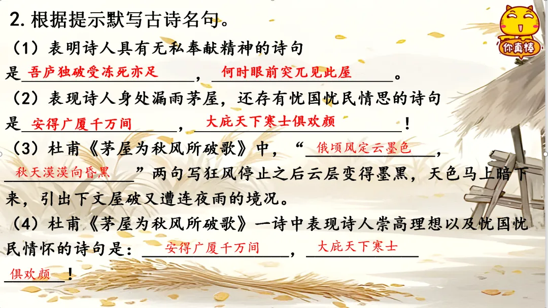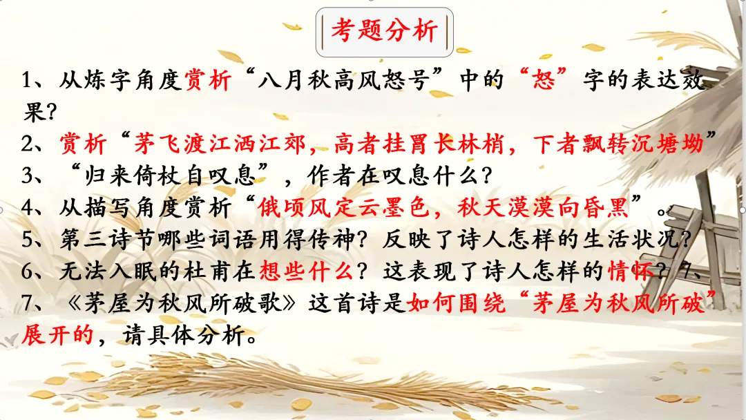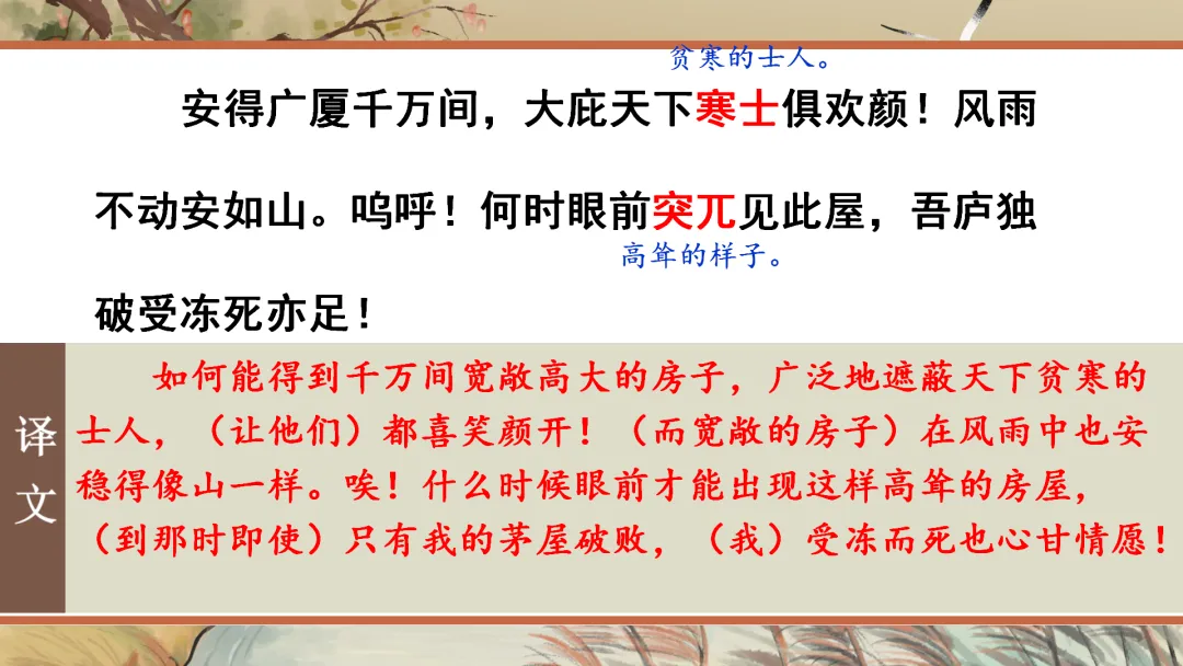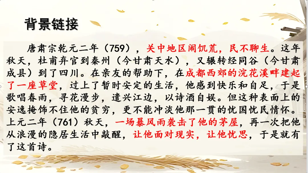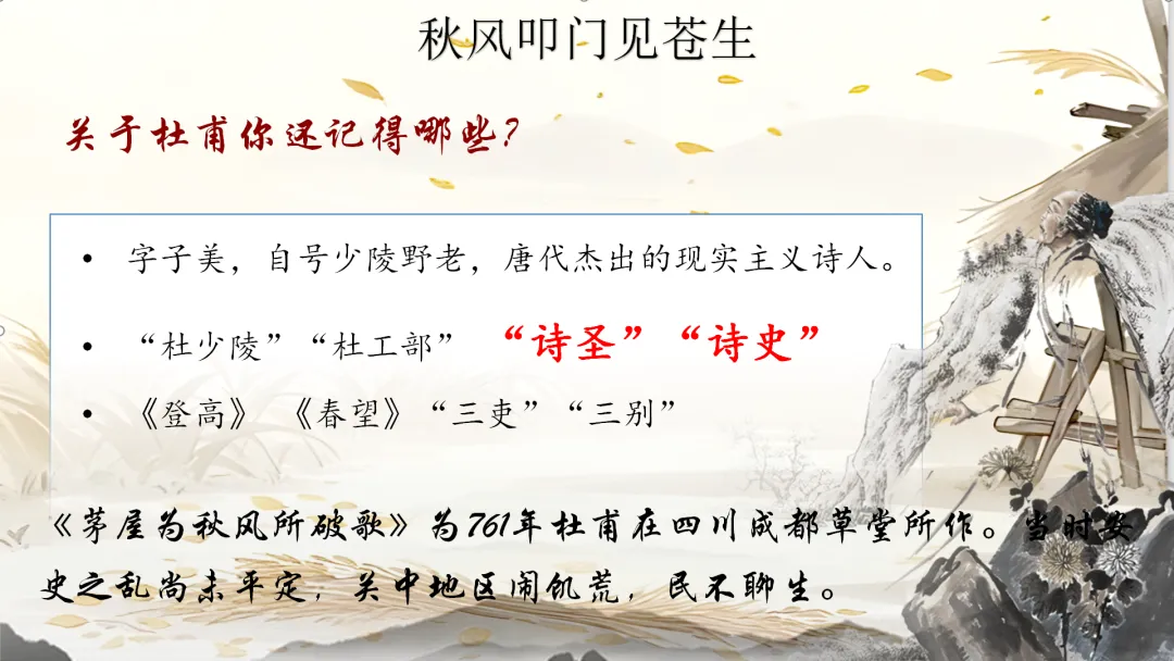 八年级下册《茅屋为秋风所破歌》教学课件