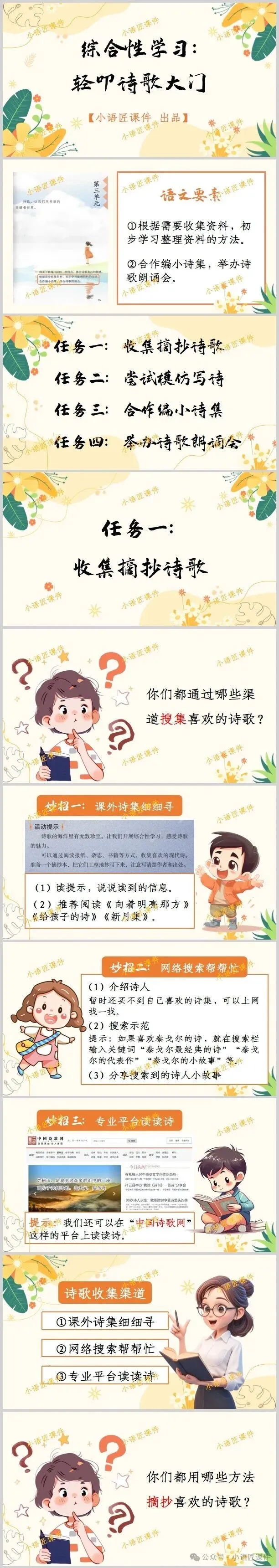 大家好,我是小语匠课件!今天给大家分享部编人教版四年级下册《综合性学习:轻叩诗歌大门》的独家课件。