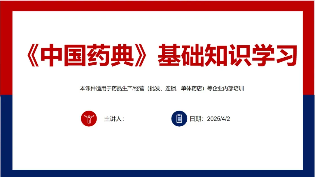 2025年3月中旬,在2025版中国药典未颁布之前,受一位川渝朋友的委托,要求出一期关于《中国药典》基本常识以及最新版2025版中国药典的变化比对相关的PPT课件,用于在批发企业内部对员工做质量管理提升的日常培训内容;我们公众号的老师们也始终记在心里,经过将近1个月的时间,制作了一期