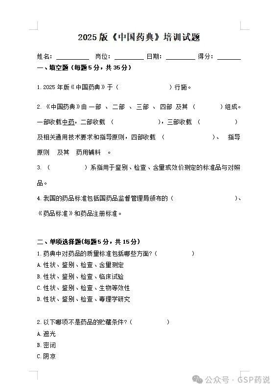>2025版《中国药典》培训课件+试卷