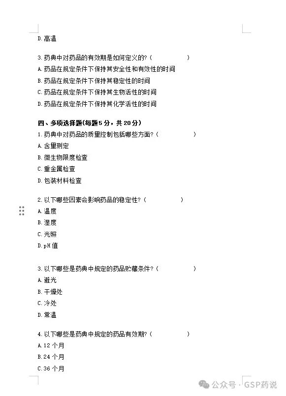 比如缺陷条款:企业验收养护人员未接受《中国药典》2020版相关内容的培训。