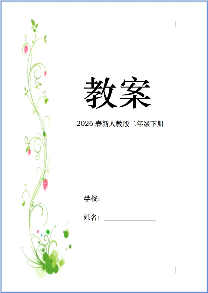 2026春最新版!小学数学(人教版)二年级下册全册核心素养教案,表格式教案,有单元备课、板书、课后反思。一个WORD文件,方便修改,文末有下载链接。