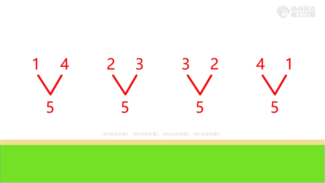 小结:1和4合起来是5,2和3合起来是5,3和2合起来是5,4和1合起来是5。