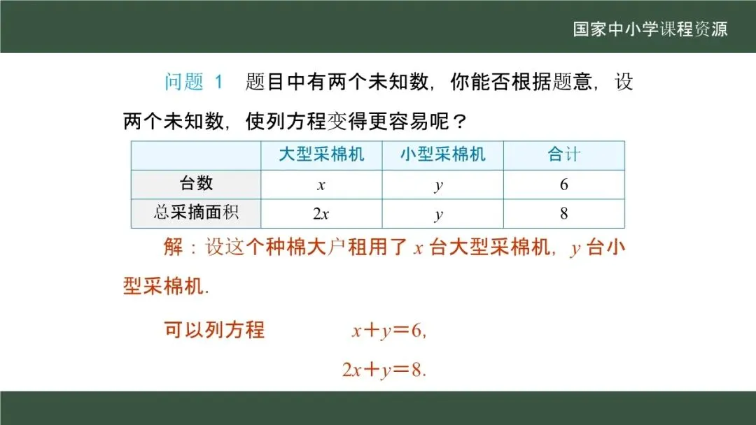 当前位置:首页>课件>【教学课件】(新教材)人教版初中数学七年级下册《10.1 二元一次方程组的概念》