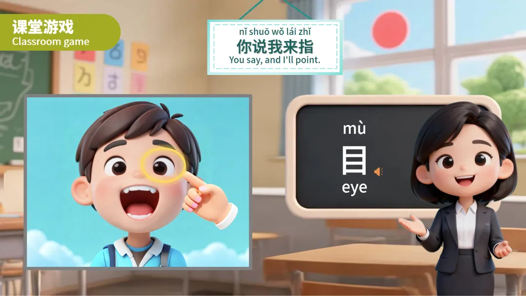 而在“你说我来指”的课堂游戏,则让孩子们在互动中加深对汉字的理解和记忆,同时还能培养他们的团队协作能力和反应能力。这种互动式的学习方式,极大地提高了孩子们的学习积极性和参与度,使课堂氛围更加活跃。
