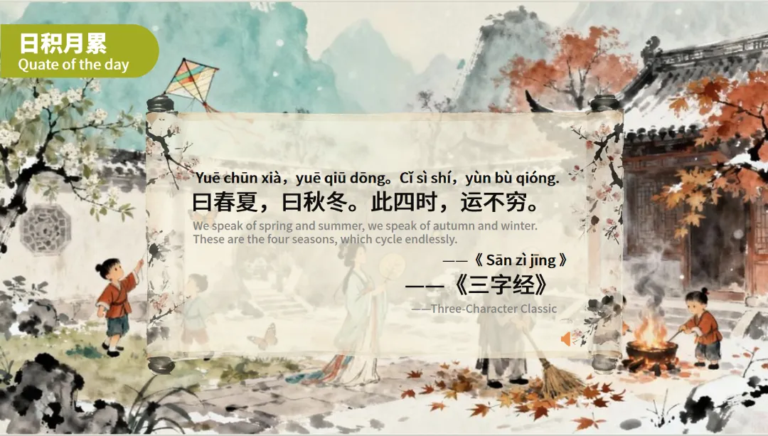 此外,还有“日积月累”板块,选取经典的《三字经》内容,让孩子们在感受中华传统文化博大精深的同时,潜移默化地接受道德教育和文化熏陶。