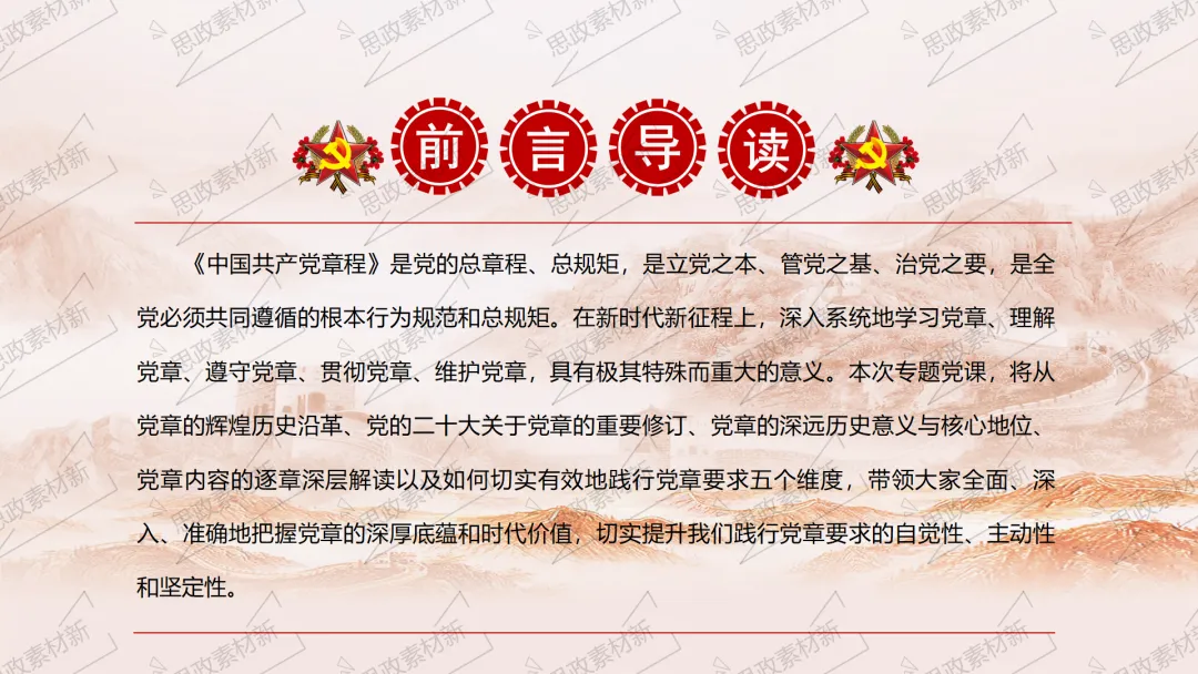 >党课65(课件+讲稿)深入学习党章 书写时代新华章 学习《中国共产党章程》专题党课