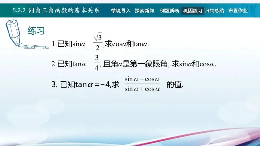 当前位置:首页>课件>同角三角函数的基本关系PPT教学课件