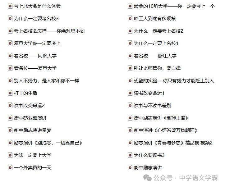 课前5分钟励志教育小视频目录