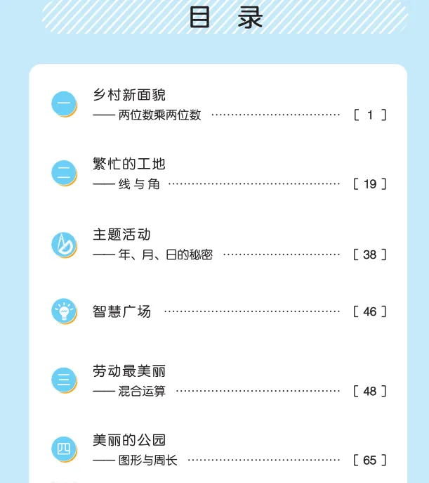4.综合与实践:年、月、日的秘密(24 时记时法、平年闰年)、度量衡的故事(起源、演变、古今换算)、智慧广场(倒推法、周期问题)。