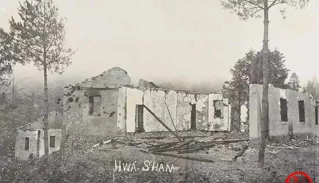 图中这处被烧空的洋房,就叫华山屋子,墙体是白灰抹面配碎石地基,窗洞黑着口子,木梁塌成一排骨头似的横在地上,像被人瞬间按了灭火键,只留焦黑的气味在风里打转。这屋里原本住着英美传教士一家人,早晨六点多,号炮一响,人群冲进来,喊声和劈砸搅成一锅,半个时辰后再响一声,潮水一样退去,只剩火光舔墙根,后头的人来,只能在灰烬里翻证据。