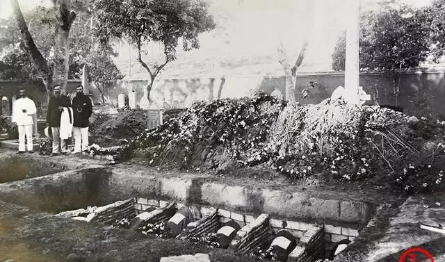 图里一溜砖砌的椁位,是遇难者的合葬处,土堆旁摆满了花束和十字,树影斑驳,几位送葬的人立着不语。以前我们只在书上见“教案”两个字,现在看见这坑位就明白,它不是概念,是一口口真家伙,装着名字、年纪、来不及说完的话。那时候人命轻,程序快,赔偿和道歉的字眼翻来覆去,活着的人想把事情压下去,死去的人只能沉下去。