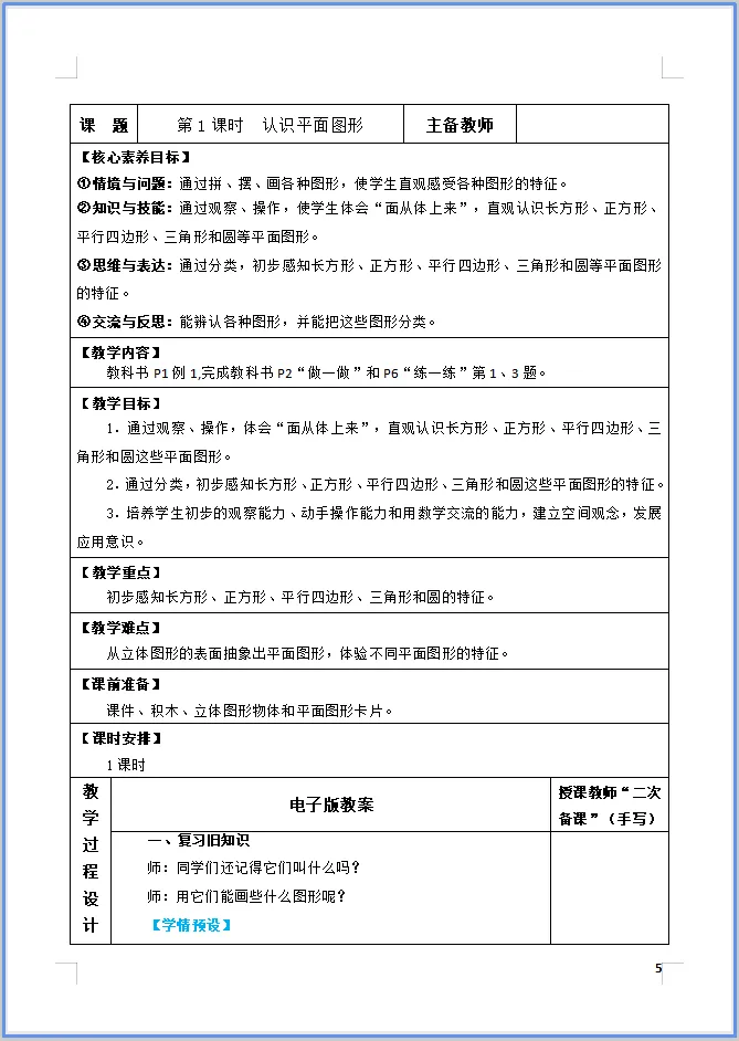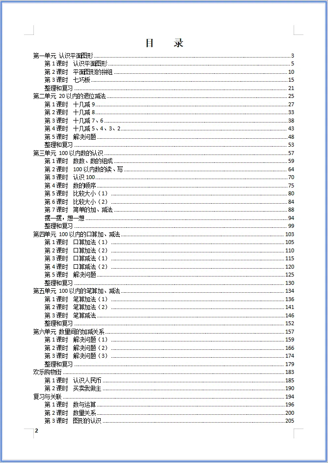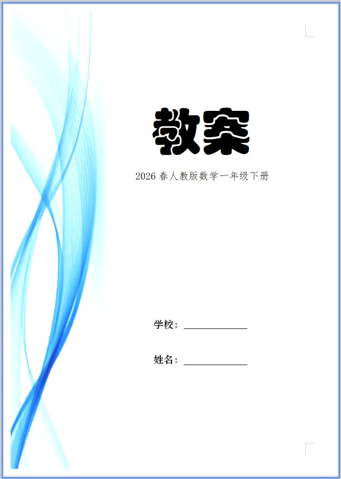 2026春最新版!小学数学(人教版)一年级下册全册核心素养教案,表格式教案,支持手写二备课,有单元备课、板书、课后反思。一个WORD文件,方便编辑修改,文末有下载链接。