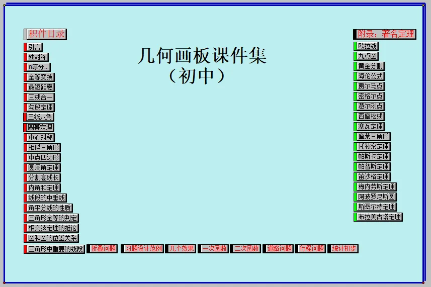 《几何画板》是一款专注数学与物理教学的动态几何软件,核心作用是将抽象几何、函数知识可视化、可交互,助力教与学。它以点、线、圆、坐标系为基础,可精准绘制平面与立体图形,支持平移、旋转、缩放等变换几何画板。拖动图形元素时,预设几何关系(如平行、全等、中点)始终保持不变,能直观演示定理与规律。软件可实时测量长度、角度、面积,支持函数计算与轨迹追踪,还能制作动画、迭代图形,把静态知识转为动态演示。教学中,它帮教师制作交互课件,让学生自主拖动、验证猜想,打通代数与几何联系,培养空间想象与逻辑思维,是数学、物理教学的高效工具。