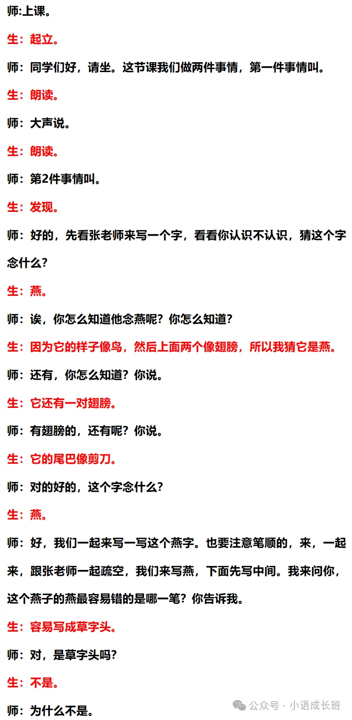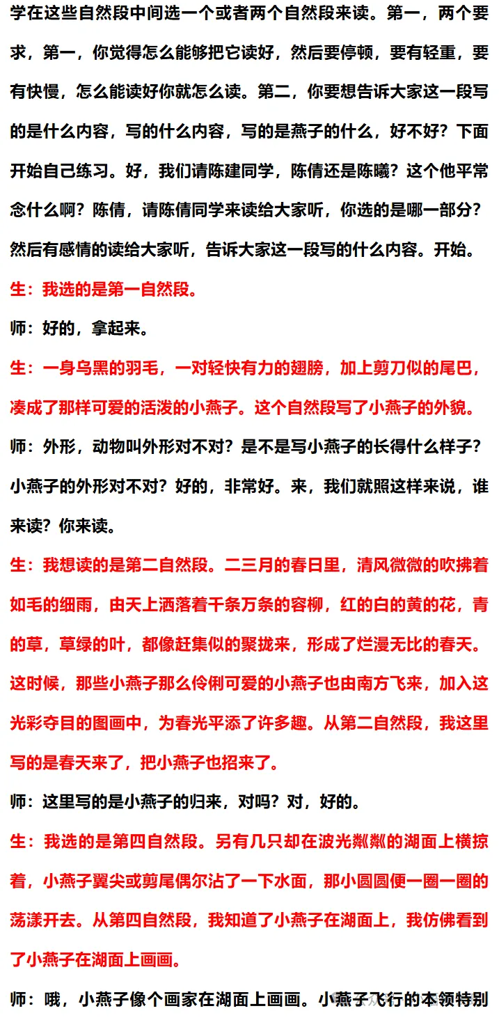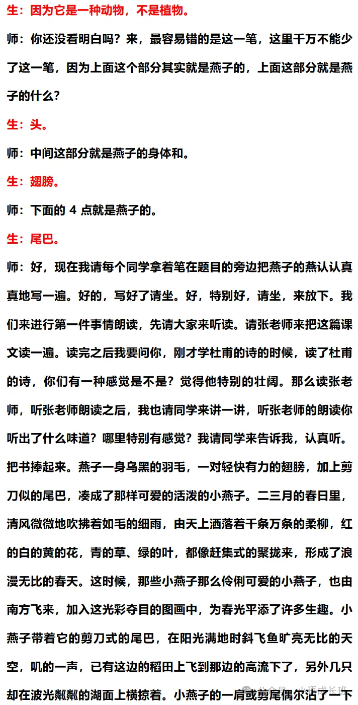 >【新课标优质课】|三下《燕子》逐字稿+教案课件+视频|执教:张老师
