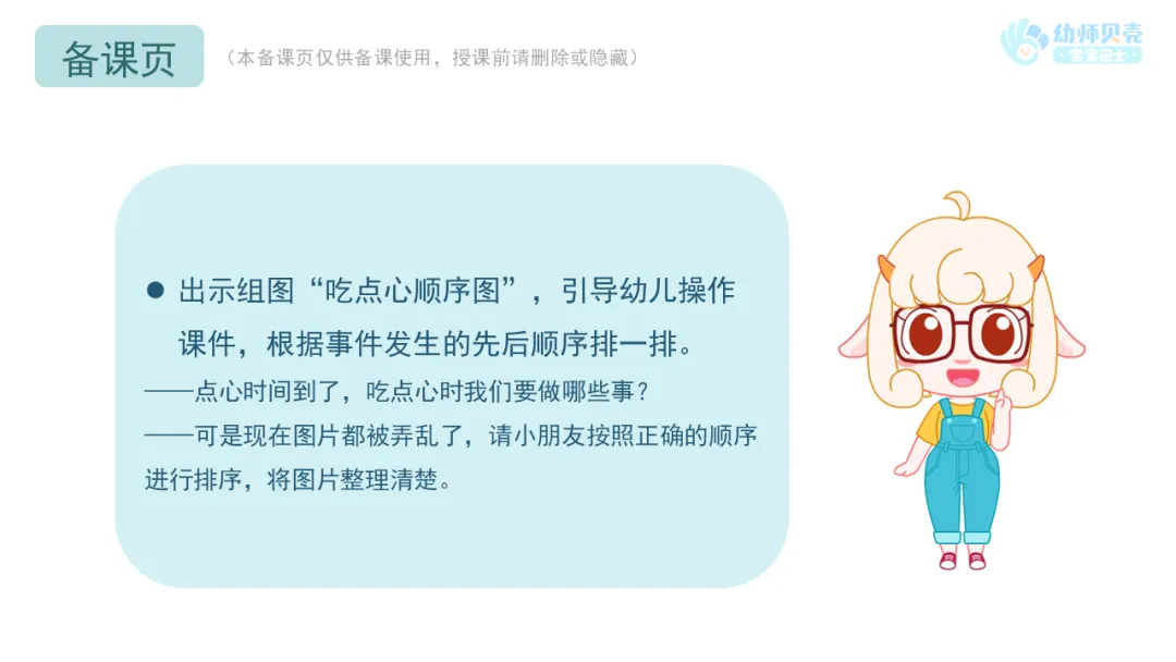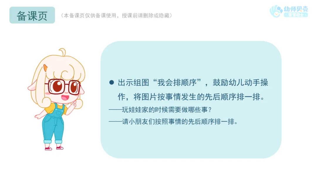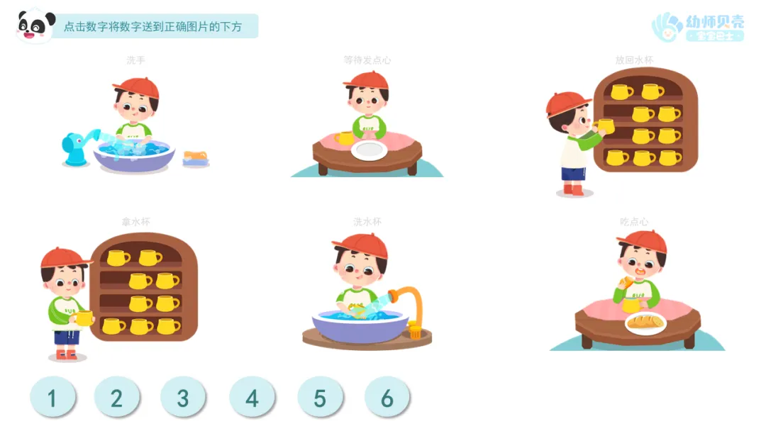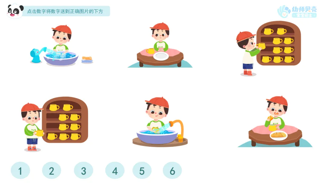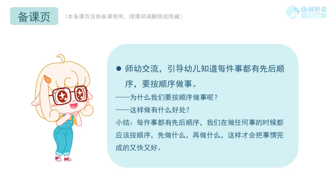 l师幼交流,引导幼儿知道每件事都有先后顺序,要按顺序做事。