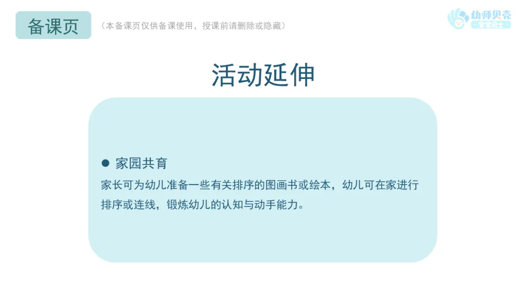 家长可为幼儿准备一些有关排序的图画书或绘本,幼儿可在家进行排序或连线,锻炼幼