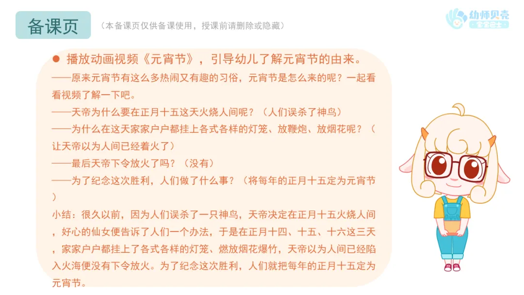 l播放动画视频《元宵节》,引导幼儿了解元宵节的由来。