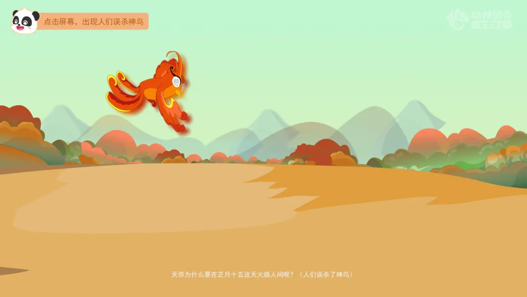 小结:很久以前,因为人们误杀了一只神鸟,天帝决定在正月十五火烧人间,好心的仙女便告诉了人们一个办法,于是在正月十四、十五、十六这三天,家家户户都挂上了各式各样的灯笼、燃放烟花爆竹,天帝以为人间已经陷入火海便没有下令放火。为了纪念这次胜利,人们就把每年的正月十五定为元宵节。
