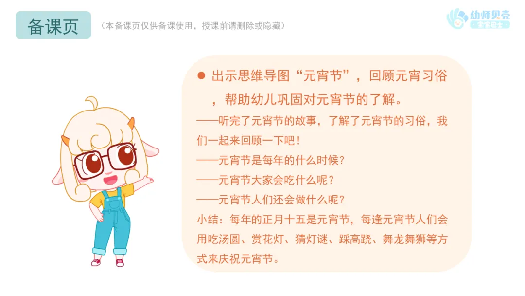 ——听完了元宵节的故事,了解了元宵节的习俗,我们一起来回顾一下吧!