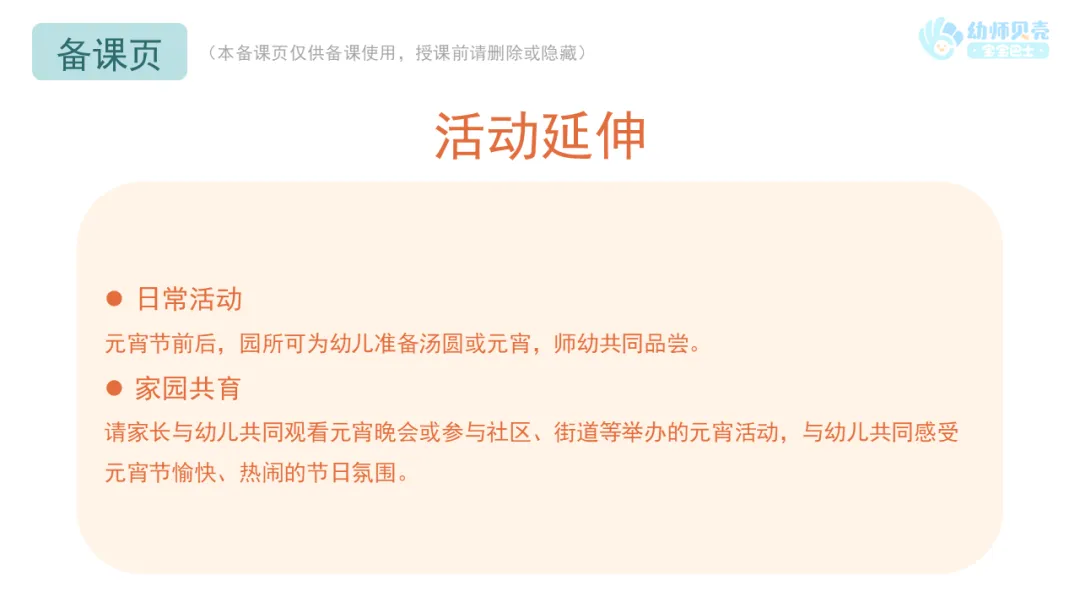 元宵节前后,园所可为幼儿准备汤圆或元宵,师幼共同品尝。