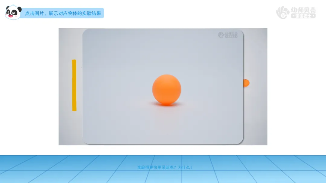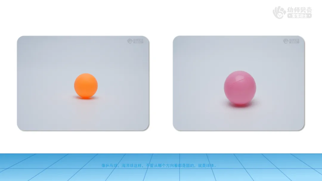 小结:今天我们在“圆滚滚”主题馆中认识了球体和圆柱体。像乒乓球这样,不管从哪个方