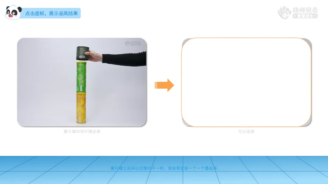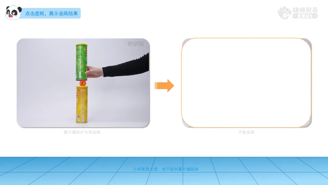 小结:小球表面光滑,很难一个一个叠起来;而薯片罐立起来以后像柱子一样,很容易就