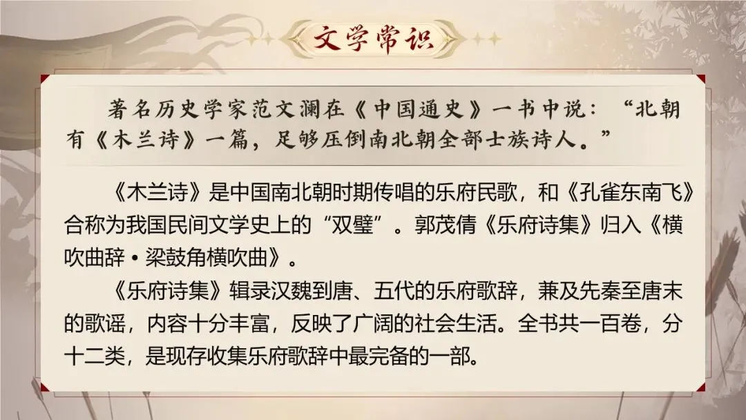 >初中语文 | 七下《木兰诗》课件+教学设计